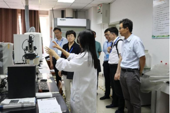专家考察实验室并认真查看员工实验报告