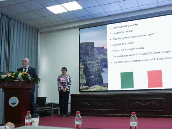 “有朋自远方来,不亦乐乎”,谌姿用一句谚语表达了对贵宾来访的崇高敬意。谌姿向爱方代表介绍了太阳成集团tyc234cc的专业发展、团队力量、人才培养特色以及公司在土木建筑行业取得的科研成就。谌姿希望以这次访问为契机,进一步加强与香农理工大学的沟通与交流,双方深化互利与合作,共同推动国际化人才培养,让更多的员工走出国门,迈向国际舞台。