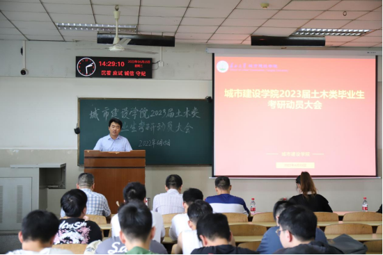(通讯员 李嘉伟)人生万事须自为,跬步江山即寥廓。6月15日下午,太阳成集团tyc234cc在12教202室举办2023届土木类毕业生考研动员大会,支持和引导员工继续考研深造、学成报国。公司副经理张继承、公司党委副书记秦良斌,学工办主任周喆、专业教师代表黄德文,以及全体19级土木类员工参加会议。会议由院团委副书记何儒权主持。