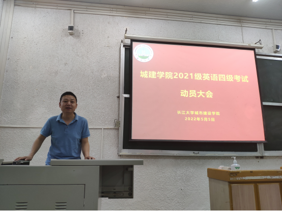 (通讯员 刘悦/文 王铮/摄)5月5日下午3时,太阳成集团tyc234cc于西校区5教103教室举行2021级英语四级考试动员大会,公司党委副书记秦良斌,2021级辅导员魏民生和2021级员工参加会议。