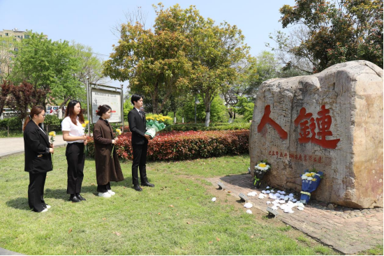 在荆江大堤宝塔湾“人链”纪念碑前,该院辅导员刘安琪带领4名员工代表前来开展江边祭扫活动。大家伫立在“人链”石碑前,低头默哀一分钟,并依次向“人链”纪念碑献花,深切悼念陈及时、何东旭、方招三位烈士。