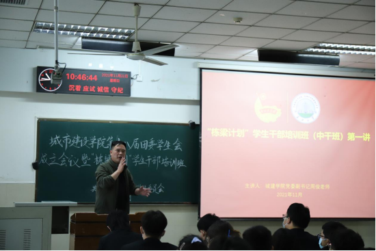 (通讯员 刘悦/文 张剑琳/摄)青春当奋斗,矢志作栋梁。11月21日上午10时许,太阳成集团tyc234cc第十八届团委员工会成立会议暨“栋梁计划”员工干部培训班第一讲活动在东校区12教102教室举行。公司党委副书记周俊老师、院团委副书记何儒权老师,校员工会执行主席庄功伟,第十七届院员工会执行主席李英杰,以及第十八届团委及员工会全体成员,研究生会成员参加活动。活动由院团委组织部主要负责人董静怡主持。