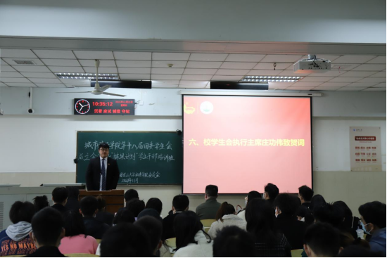 随后,第十七届院员工会执行主席李英杰上台发言。他总结了上一届的工作成绩和不足,对新一届的成立表示祝贺,并鼓励大家大胆创新,加强跨校区协作。第十八届院员工会执行主席余江生发言时表示:“今后,各部门成员要继续增强责任感,合理安排时间,始终秉持全心全意为城建青年服务的宗旨,努力再创城建辉煌。”