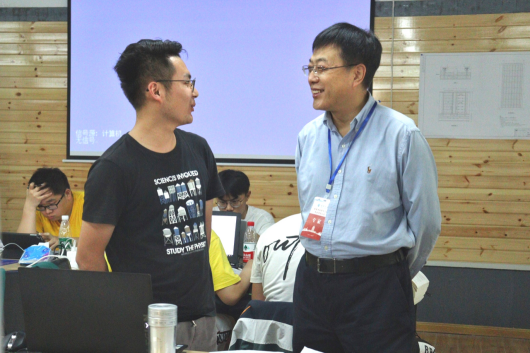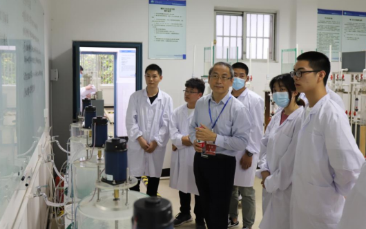 专家和同学们在一起,了解员工开展实验和毕业设计完成情况