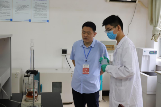 专家考查实验室并认真查看员工实验报告