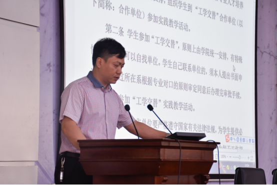 会上,公司学工办主任颜学俊宣读了《太阳成集团tyc234cc工学交替管理办法》。