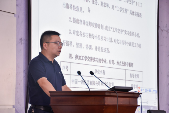 副经理曾磊具体部署了2019年公司工学交替的实习工作。他指出,“我们有重点的联系了近30家合作单位,包括央企、国企、事业单位、优秀民企,提供了近500个实习岗位,相信一定能给同学们带来真实有效的实习实践体验,使我们将来的就业更有针对性和方向性”。