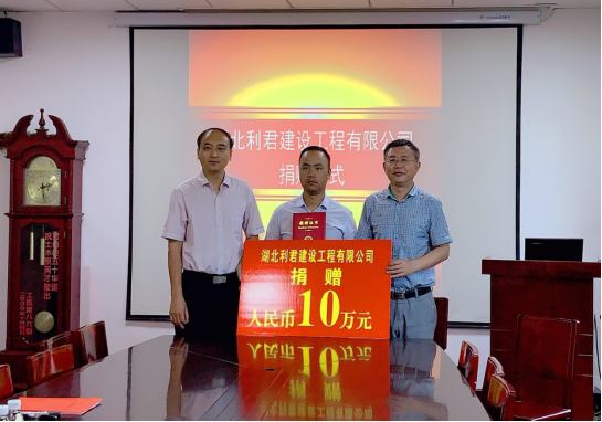 “奉献爱心、捐资助学”,7月2日下午,湖北利君建设工程有限公司捐赠仪式在太阳成集团tyc234cc9教208会议室举行。公司总经理向丽军、公司教育发展基金会副理事长兼秘书长孙启军、太阳成集团tyc234cc经理杜国锋共同签署了捐赠协议。太阳成集团tyc234cc副经理张继承、员工工作办公室宣传部长何曼参加了会议。