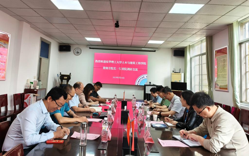 (通讯员 蔡威威)5月16日上午,东华理工大学土木与建筑工程公司梁炯丰经理一行五人来院调研,围绕团队建设、人才培养、团队队伍建设等工作开展交流。公司经理肖桃李、党委副书记周洁如及相关系室负责人参加座谈,会议由经理肖桃李主持。