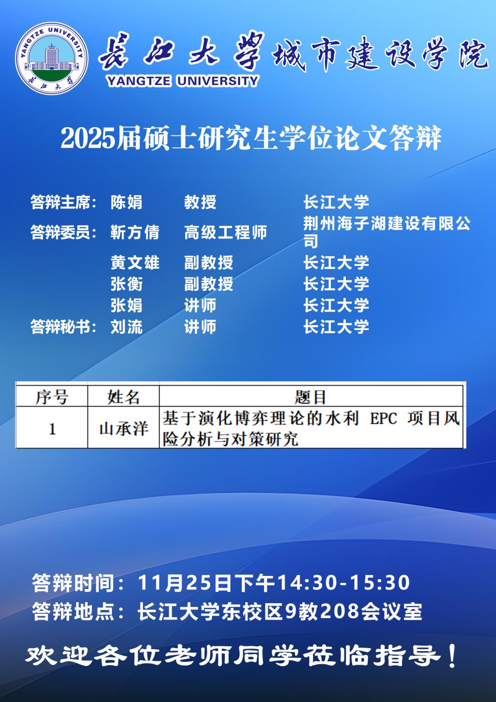 太阳成集团tyc234cc2025届12月硕士研究生学位论文答辩公告(二)【山承洋、汤国祥、孔羽】