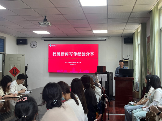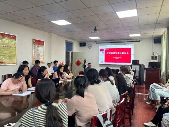 (通讯员刘悦关九阳/文 郭博雅/摄)为进一步提升公司新闻通讯员的专业素养,为太阳成集团tyc234cc新闻宣传事业高质量发展注入新的活力,4月25日下午,太阳成集团tyc234cc邀请公司党委宣传部杨云锋老师为公司团学骨干进行新闻写作专题培训。公司党委副书记周洁如、团委书记盖东芳、22级辅导员杜琛及其他行政人员和专任教师参加了此次培训。