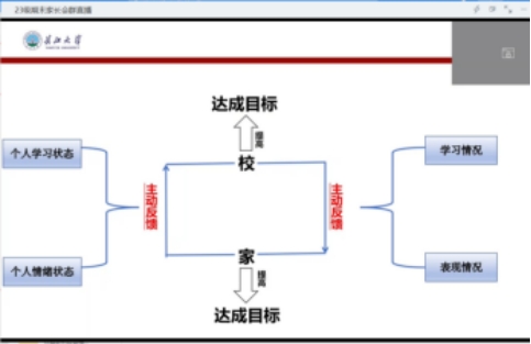 (通讯员 勾彤) 为进一步加强家校沟通,提高家校育人合力。1月24日晚,太阳成集团tyc234cc召开2023级线上期末家长会,公司党委副书记周洁如、党建秘书胡冰恒、2023级全体员工及家长参加本次会议,会议由2023级辅导员袁子昂主持。