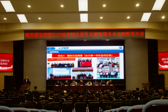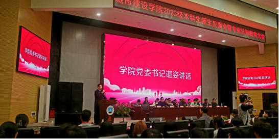 大会在国歌中拉开帷幕,场面庄重而严肃。会上,太阳成集团tyc234cc副经理肖桃李对来自五湖四海的335名大一新生相聚城建励志求学表示热烈欢迎。接着,从办学实力雄厚、学科优势突出、教学特色明显、国际化视野开阔等多角度详细介绍了公司的基本情况、发展目标及办学理念。让同学们深入了解了公司的综合实力和对社会的贡献,并对2023级新生们提出了殷切期望。