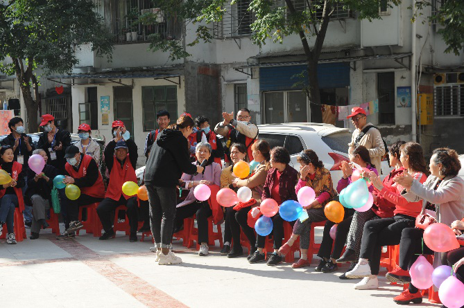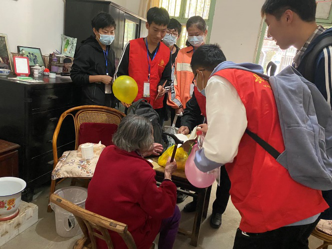 节目表演结束,志愿者们分为八个组,在社区工作者的带领下进行走访入户工作,去慰问高龄老人们,为他们送去早就准备好的水果和贺卡,陪他们聊天,帮他们做家务。老人们也乐于与志愿者们分享自己的日常生活和人生感悟。活动结束后,还有许多老人留下了联系方式,希望志愿者们平时也能与他们聊聊天。