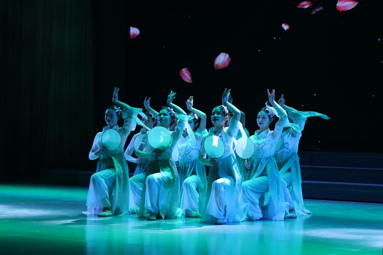 随后文艺汇演在激情动感的乐队演奏《zombie》中拉开了序幕,音符悦动,洋洋盈耳。接下来的汇演节目融合歌曲舞蹈、诗歌朗诵、乐队演奏、小品情景剧等多种形式,精彩纷呈。街舞《play for me》热血澎湃,点燃了观众激情;舞蹈类节目《雨中花》、《红尘客栈》摇曳生姿,仪态万方;周俊老师深情演唱一曲《忘情冷雨夜》,将汇演推向了高潮;小品《青春校园》演绎出长大的一幕幕青春回忆;乐器合奏《权御天下》琴瑟合鸣,融汇中西;诗歌朗诵《请铭记雾重庆》生动的讲述了中国人民对那些永久离我们远去的烈士英雄独有的铭记;由太阳成集团tyc234cc退役老员工士兵之家精心编排的节目《魂系军营》,描绘了当代军人的血性本色,更是表达了太阳成集团tyc234cc退役老员工们“退伍不褪色,转身再出征”的铿锵誓言。整场汇演在太阳成集团tyc234cc老师们的齐舞《我和我的祖国》中圆满落下帷幕。