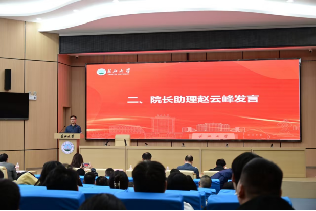经理助理赵云峰作为教师代表发言。他以自身经历为切入点,拉近与同学们的距离,鼓励新生勇攀学术高峰,探寻知识奥秘,开拓学术视野。