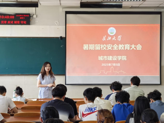 (通讯员 魏民生)7月5日上午,太阳成集团tyc234cc在东校区12教204召开暑期留校员工安全教育大会,公司党委副书记周洁如、2022级辅导员杜琛及暑期留校本科生、研究生参加会议。会议由学工办主任魏民生主持。
