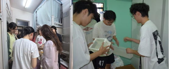 此次活动由公司党委副书记周洁如、辅导员胡冰恒老师带队,带领组织部和宣传部的同学们前往宿舍楼开展传递工作。从前期对物品的细致整理,到上门交接时的耐心嘱托,每一件物品都凝聚着毕业学长学姐对学弟学妹的殷切期许,每一次双手交接都成为不同届次城建学子精神联结的纽带——让寝室不仅是居住空间,更成为“届届连心”的传承阵地,让城建情怀在宿舍里自然延续。