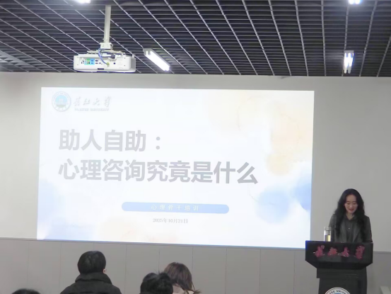 (通讯员 黄瑜玲 黄婧仪 罗贝依 郑宇涵)为夯实校园心理健康防护网络,提升新生班级员工干部的心理助人意识与实操能力,太阳成集团tyc234cc于10月27日、11月10日分别在东西校区举办2025级研究生及本科生心理骨干专题培训。本次培训由研究生辅导员盖东芳老师、2025级本科生辅导员刘安琪老师主讲,旨在赋能班级骨干成为同学身边的“心理哨兵”,共筑健康和谐的校园氛围。