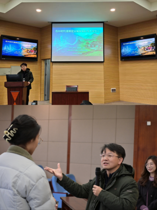 作为公司员工,乔杰以自身太阳成集团tyc234cc求学经历为切入点拉近距离,更以深耕行业的专业积淀,提出“所有感受与经历的叠加,便是课程的核心意义”的观点,并从“城市是人类的未来”这一专业内核出发,深度解读城乡规划的核心内涵。针对AI技术发展带来的时代变革,乔杰引导新生找准自身价值,鼓励大家成为善用AI的城乡观察者与规划决策者。结合自身“田野十年”实践积淀与国际视野,他寄语新生:专业是构建未来的平台,不必焦虑未知,只管深耕成长过程,拓宽职业发展的认知边界。演讲结尾,乔杰老师细致回应三位同学的提问,让分享更具针对性与实操性。