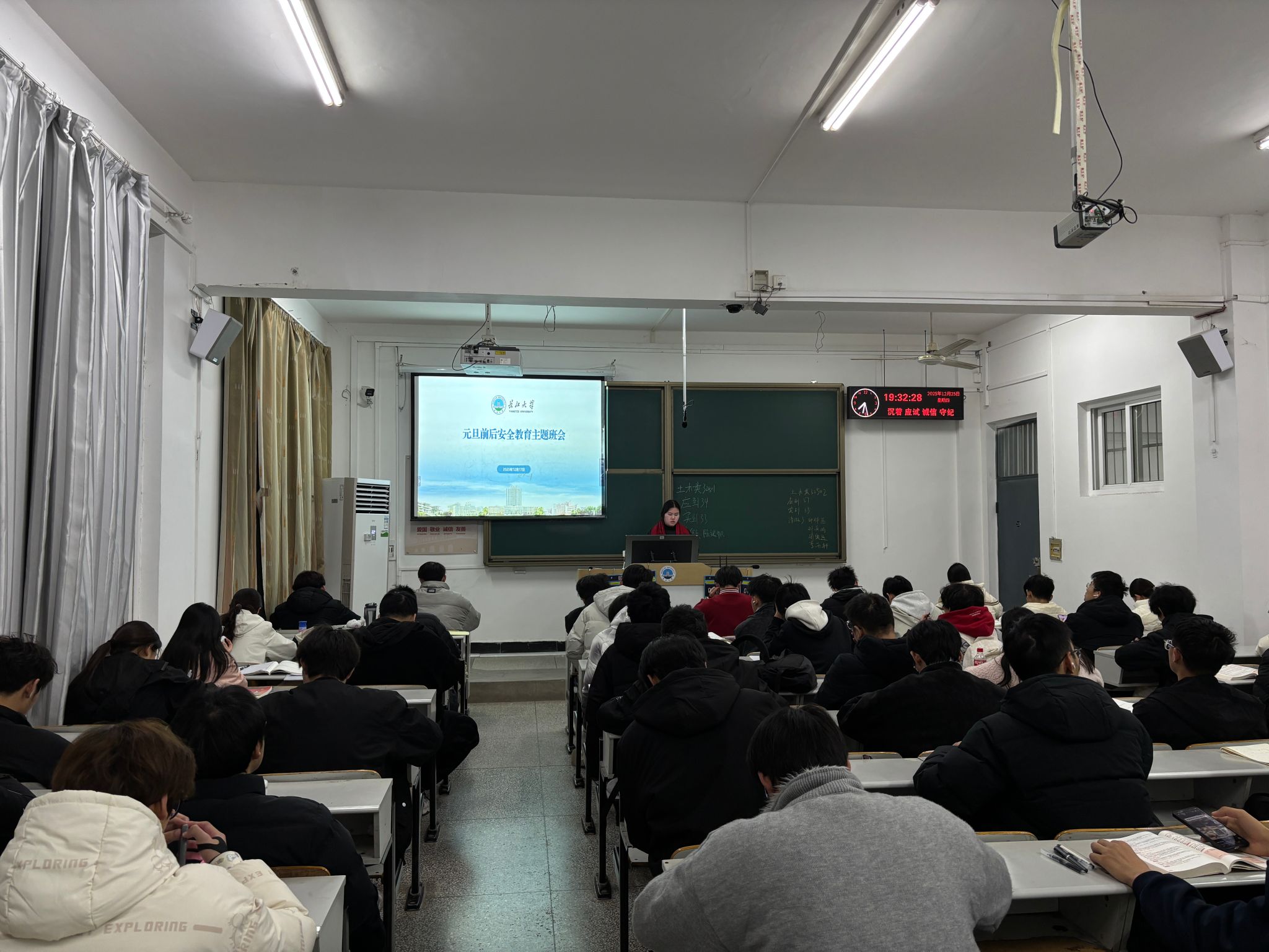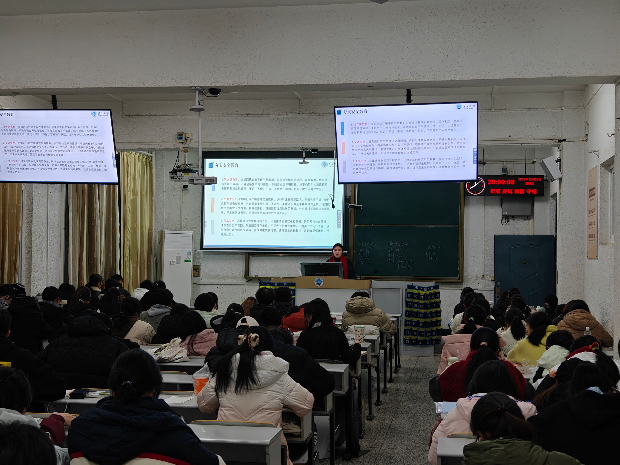 元旦假期临近,太阳成集团tyc234cc各班级于12月下旬组织开展了假期安全教育主题班会。班会全面覆盖全院员工,通过案例讲解形式,重点强调了防诈骗、交通安全、消防安全以及电动车规范使用等安全知识。