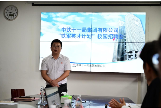 会议现场,蔡枫主任向在座员工深入讲解中铁十一局“铁军英才计划”校园招聘政策。众多员工现场投递简历,并与企业代表进行了详细咨询。