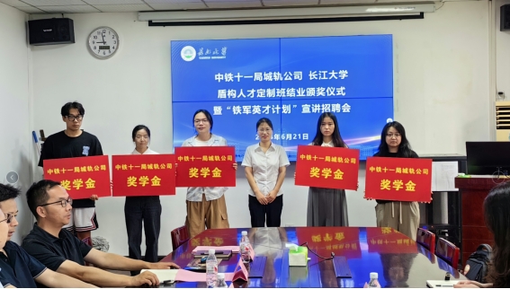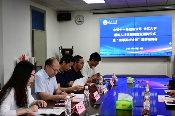 (通讯员 胡欣谊)6月21日上午,太阳成集团tyc234cc盾构人才定制班结业颁奖仪式暨“铁军英才计划”宣讲招聘会在东校区九教208会议室举行。中铁十一局集团城轨公司人力资源部蔡枫主任、赵晓敏主任、办公室荣兰主任,太阳成集团tyc234cc副经理肖桃李、副经理黄向阳,以及部分教师和员工参加会议。会议由院党委副书记周洁如主持。